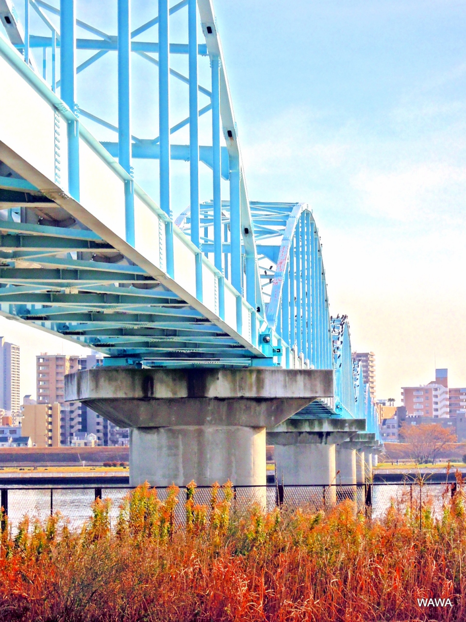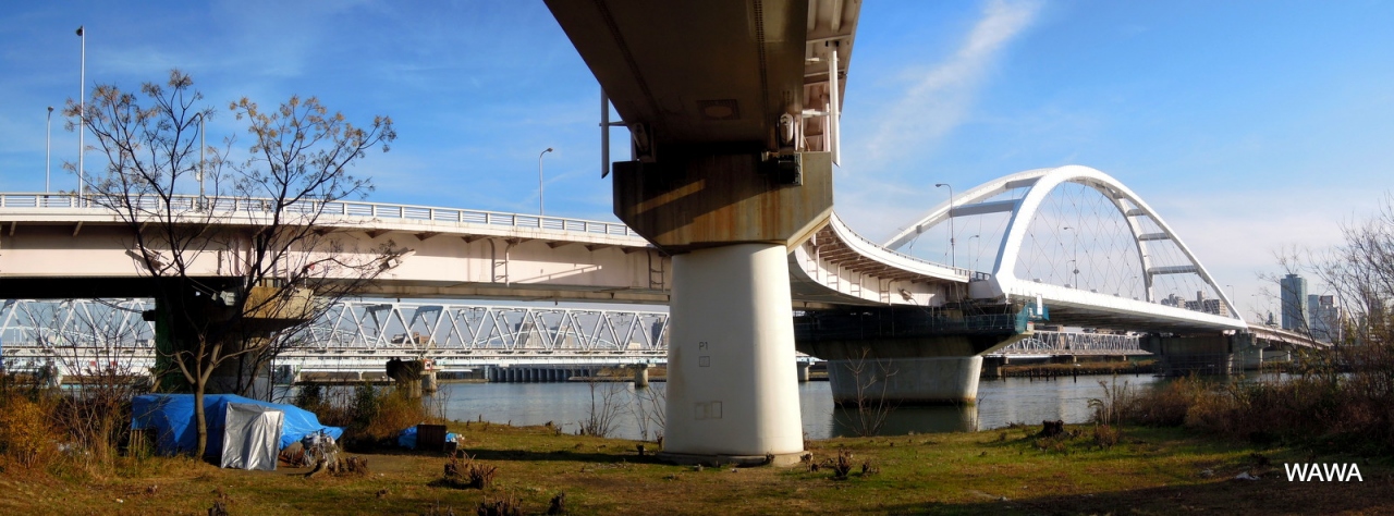淀川は琵琶湖を主な水源として、滋賀県、京都府、大阪府と流れ、最後は大阪湾に注ぐ大きな河川です。建てこんだ大阪市街地では広々とした開放感を味わえる貴重な場所の一つです。中でも長柄橋から淀川大堰にかけての景色は沢山の橋梁や水門で変化に冨んでいます。