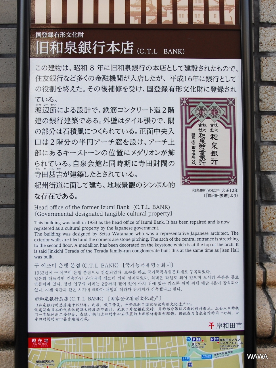 岸和田市内の旧紀州街道沿いには古い銀行の近代建築が3つ連続で並んでいます