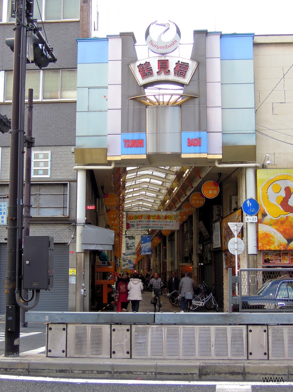 鶴見橋商店街(つるみばししょうてんがい)は大阪市西成区の国道26号線花園町付近から西の阪神高速道路15号堺線津守出入口付近まで東西約1kmに延びるアーケード商店街。東の1番街から西の8番街まで続き、かつては日本で2番目に長い商店街として数えられていたこともある(日本でアーケードの総延長が一番長い商店街は高松市の丸亀町商店街核とする高松中央商店街の2.7km)。高度成長期の「昭和」そのままの古い様式の店構えの商店が続き、碁会所や大衆演劇の鈴成座もあることから、買物やグルメ以外にも観光地としても十分楽しめる商店街です。