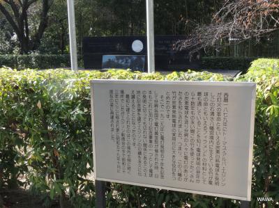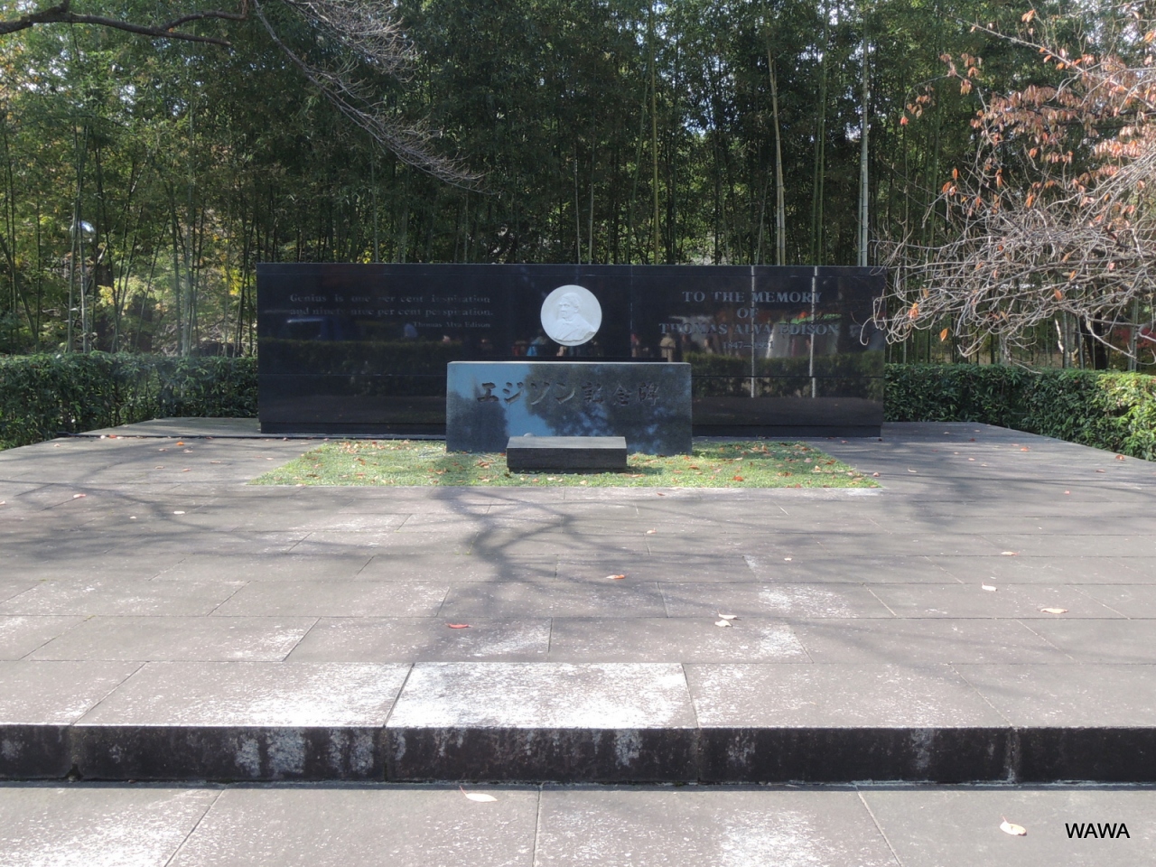 電球フィラメントに使った八幡の竹に由来し石清水八幡宮駐車場付近にある記念碑です