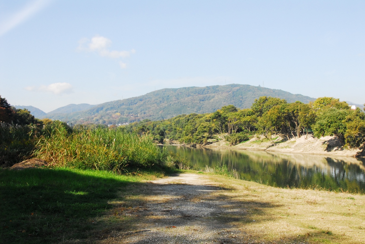 北に天王山、南に男山を望み、広く開けた景色と桜並木が楽しめます