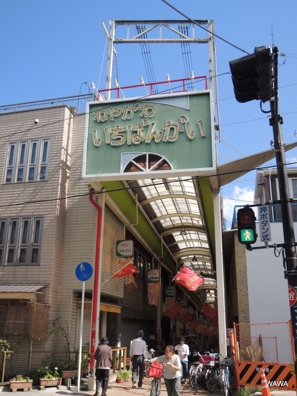 駅向こうの寝屋川一番街商店街と合わせて活気のある駅前商店街で