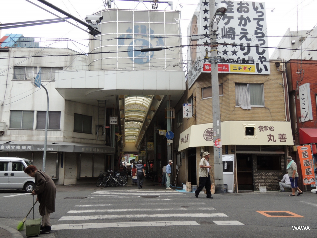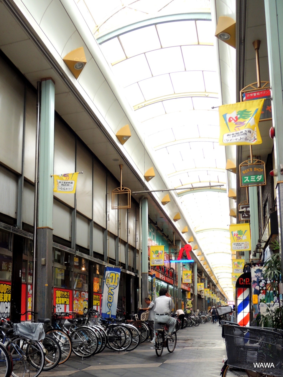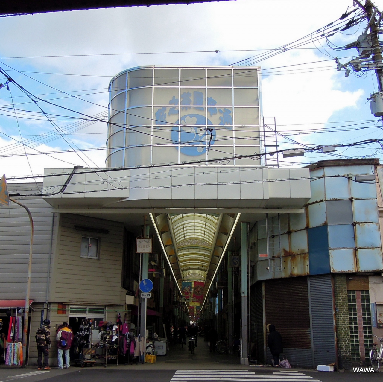 萩之茶屋本通商店街は南海高野線「萩ノ茶屋」駅前から阪堺電車「今池」駅までの間を東西に伸びるアーケード商店街です。萩ノ茶屋駅前には銀座センターなる近代建築の特徴的な建物もあり、商店街の周辺は男性中心の人気(ひとけ)はあるものの、周辺には廃ビルも多く、独特の街並みは一見の価値があります。商店街自体は「お買物」と言うより、昼間からお酒の飲める飲食店が多いようでした。