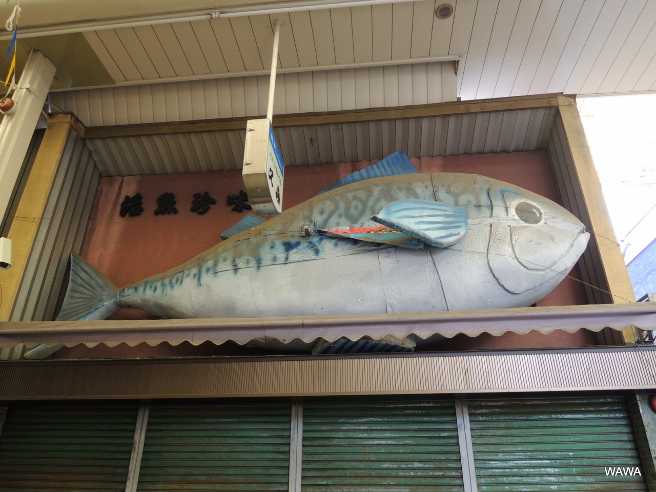 出町桝形商店街には、鯖寿司を始め伝統的な和菓子などの有名店が沢山ありますが、商店街を歩くだけでも、巨大な鯖の立体看板や子供達が描いた魚の陶板など手作りの飾り付けが多くとても楽しめます。下賀茂神社の行き返りには、是非とも立ち寄りたい場所の一つです。