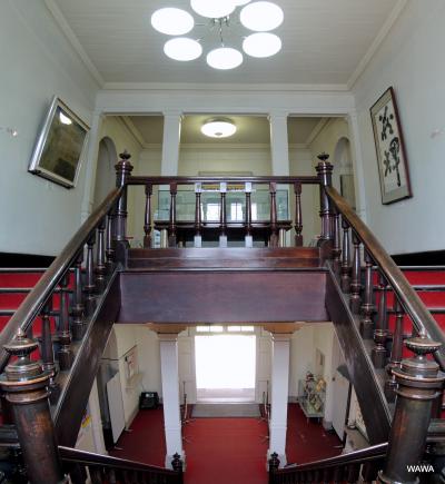 「旧偕行社」とは旧日本陸軍の社交クラブのことで、第十一師団がここ善通寺に置かれたことから、明治36年(1903年)に大きなホールを伴った「旧善通寺偕行社」と呼ばれる建物が竣工しました。現在は善通寺市役所本館の裏にあり、駐車場に囲まれた便利な場所にあります。クラシックな内装のまま綺麗に維持されている内部も無料で見学出来るうえ、レストランなども隣接しているので、立ち寄りたい場所の一つです。なお、結婚式を含むイベント開催時には内部見学は出来ないそうです。