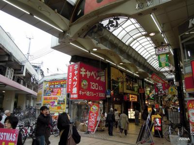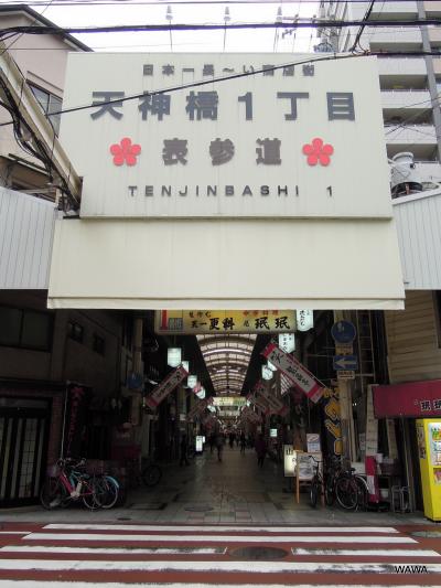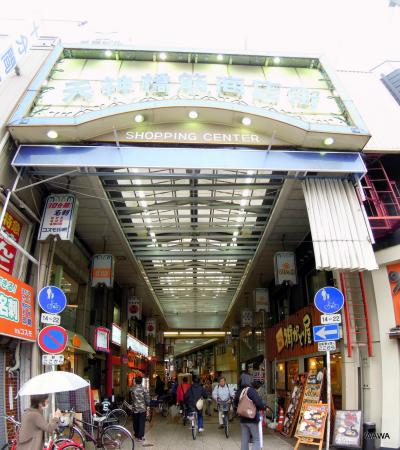 天神橋筋商店街は天神橋1丁目(南詰)から6丁目(北詰)まで、南北に一本で続く長い長い商店街です。2丁目付近には商店街の名前の由来とも言える大阪天満宮があり、3丁目と4丁目の間にはJR環状線の天満駅、6丁目の北端部分には「大阪くらしの今昔館」博物館があり、買物や食事以外にも色々と楽しめる活きた商店街です。