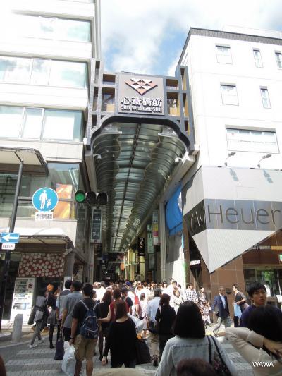 元々の心斎橋とは長堀川に架かっていた昔の橋の名前。一般会話での心斎橋はエリアの名前で、大阪市営地下鉄「心斎橋駅」や心斎橋筋商店街などを中心とした商店街や飲食街のこと。心斎橋筋とは御堂筋からひとつ東側の道路のことで、せんば心斎橋筋商店街(順慶町通以北)、心斎橋筋北商店街(長堀通以北)、心斎橋筋商店街(道頓堀以北)と、ほぼ全線にわたってアーケードが設置されています。中でもグリコ看板のある道頓堀付近から北に続く心斎橋筋商店街は、専門店や百貨店が軒を連ね、シャッター通り化とは無縁とも思える賑やかな商店街です。