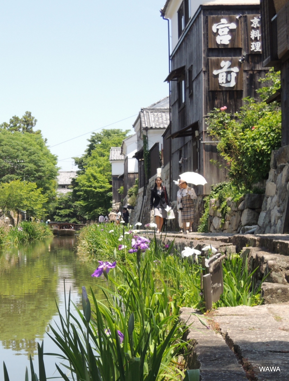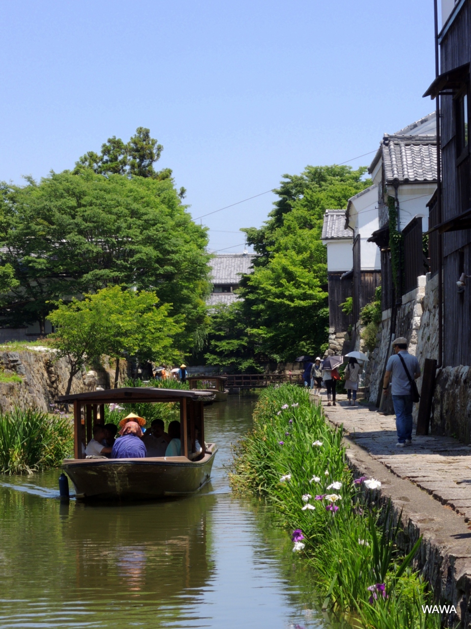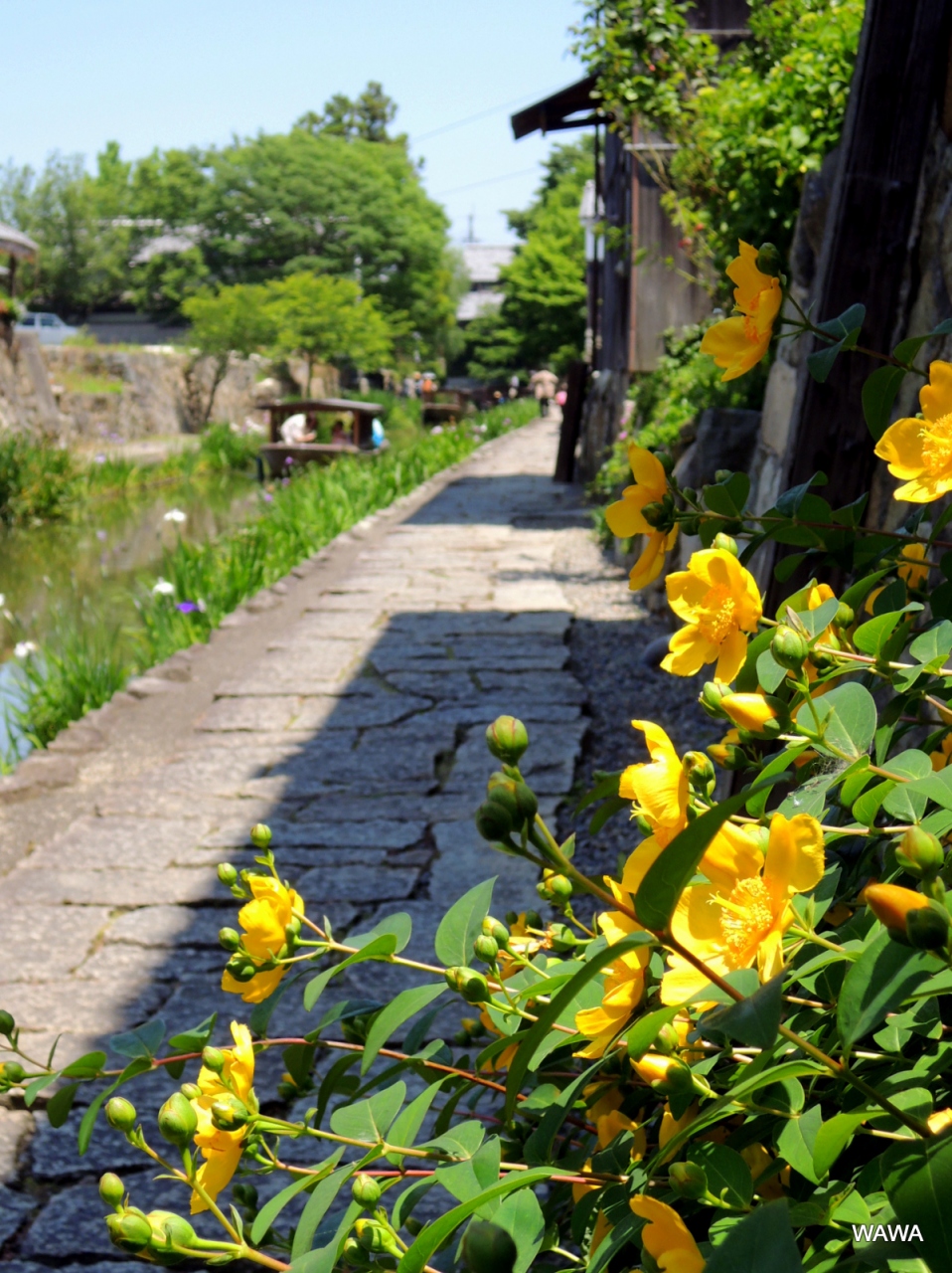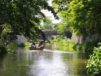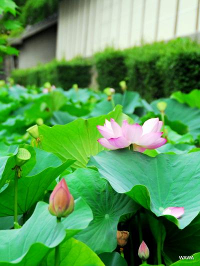 七条通より小さい通り一つ北になり、幹線道路から見えないので今まで気付きませんでしたが、東本願寺の敷地の南側には蓮堀があります。花の少ない7月にも蓮の花がや鮮やかな緑の蓮が掘割の一面に敷き詰められています。