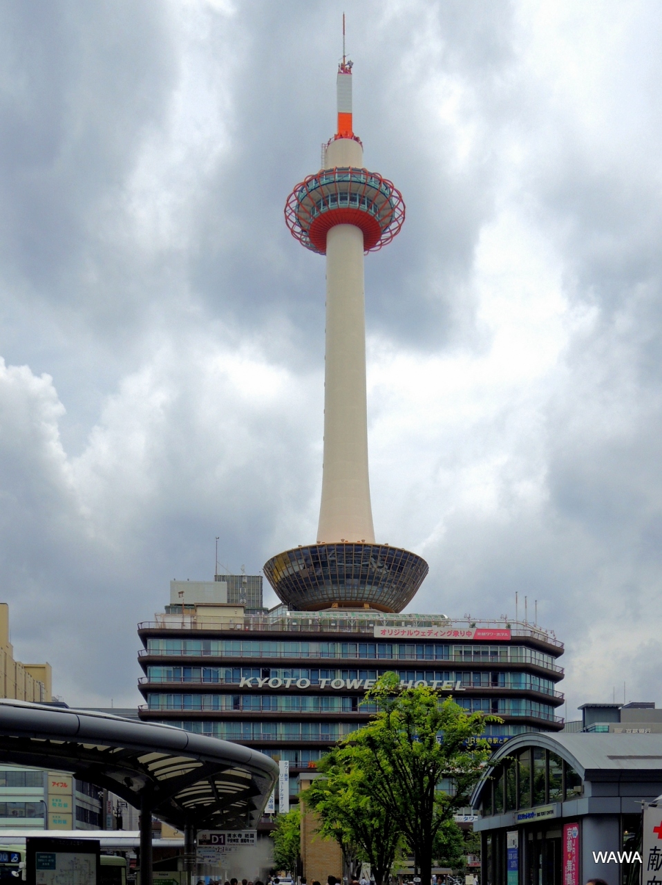 京都駅の北、烏丸中央口前の京都タワーは台座となる京都タワービルを含めて131mメートル。京都市内では最も高い建造物であり、通過する新幹線の中からも京都の象徴のように感じていました。