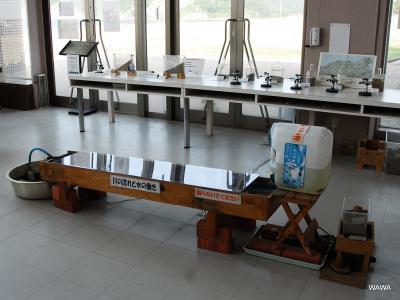 浜坂海岸沿いに建つ山陰海岸ジオパーク館には、地味な地学系ではありますが、触って学べるハンズオンの展示物が沢山あります。子供はもとより大人でも興味を維持できるように展示物が工夫されていてとても良かったです。