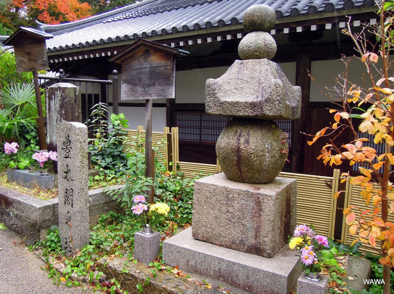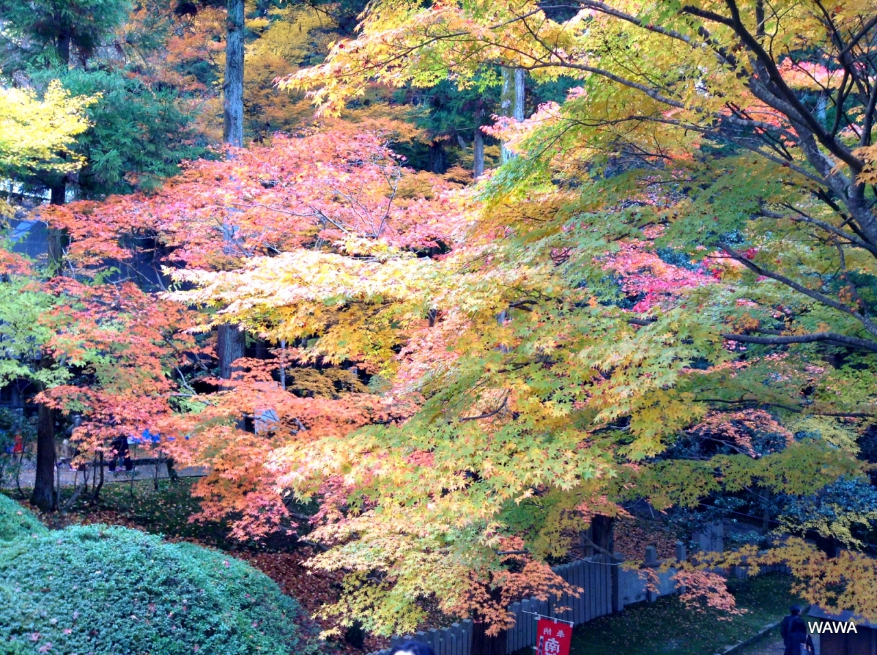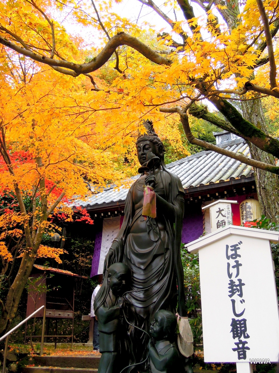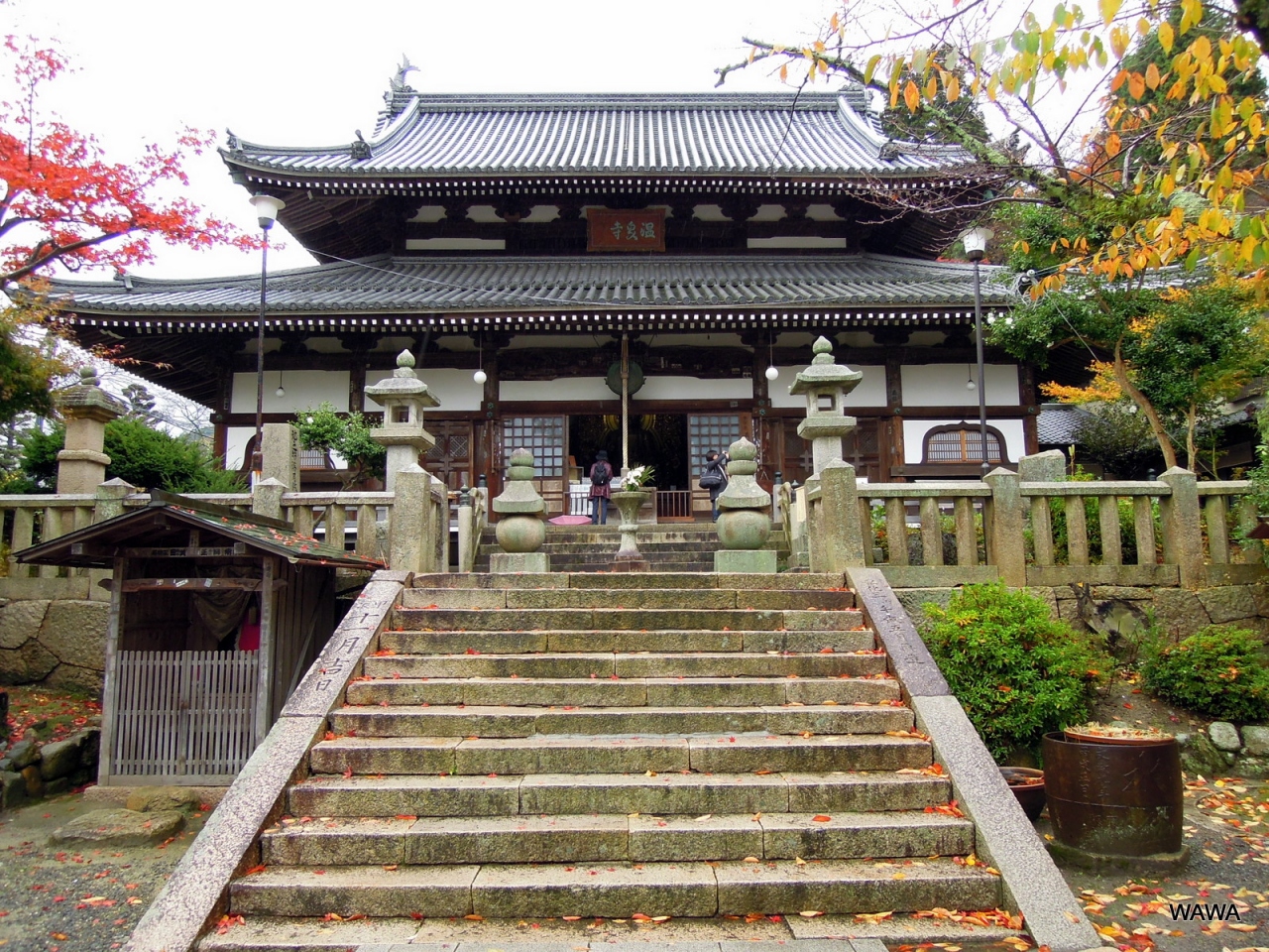鯖街道(国道)沿いに位置する中国風の山門付近に車を停め600mの急な坂道を上り詰めるとお小さい寺が建っていました。山中のためか紅葉にはムラがあり、途中の山路は植林の針葉樹ばかり、京都市の天然記念物にも指定されている樹齢700年を超える楓も大き過ぎて紅葉部分は遥か上空でした。人も少なく山寺の雰囲気は楽しめるのですが、紅葉としては今ひとつでした。- 旅行時期