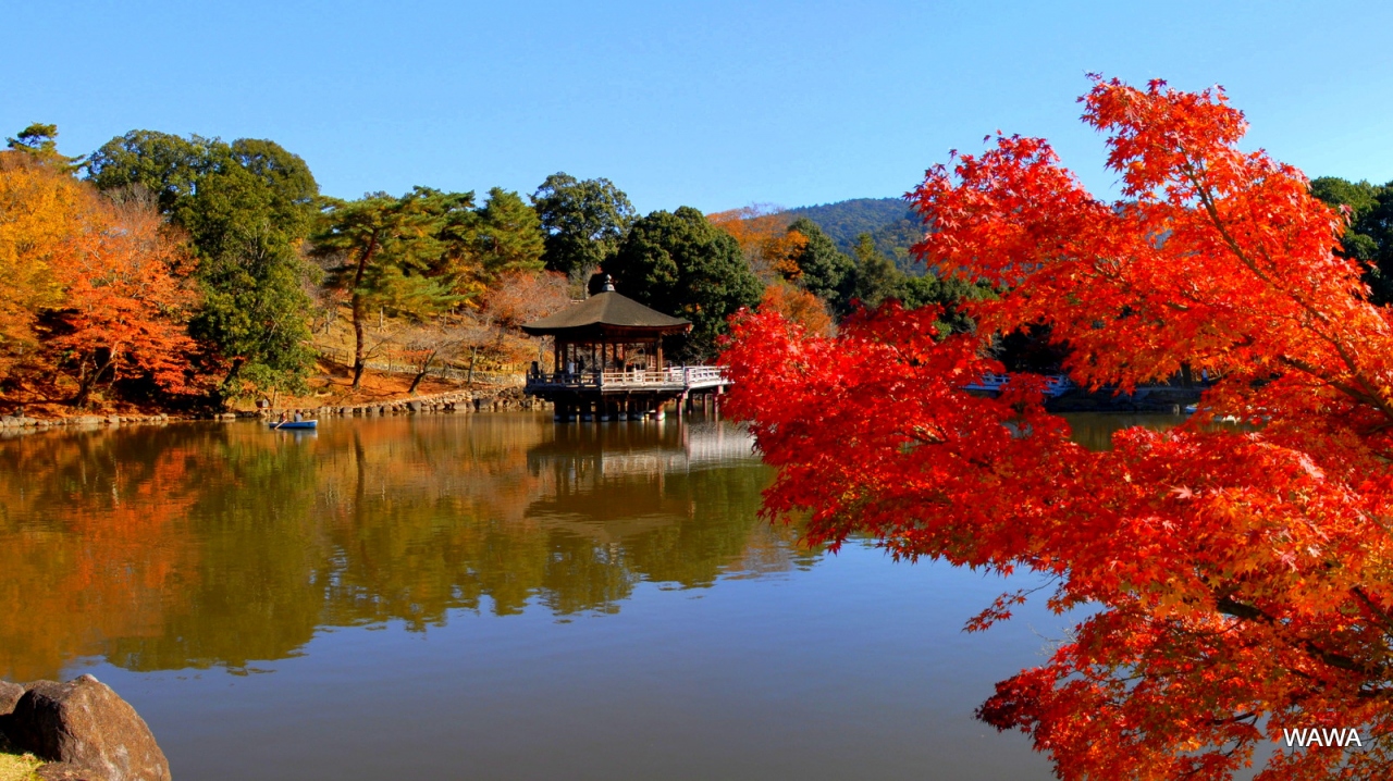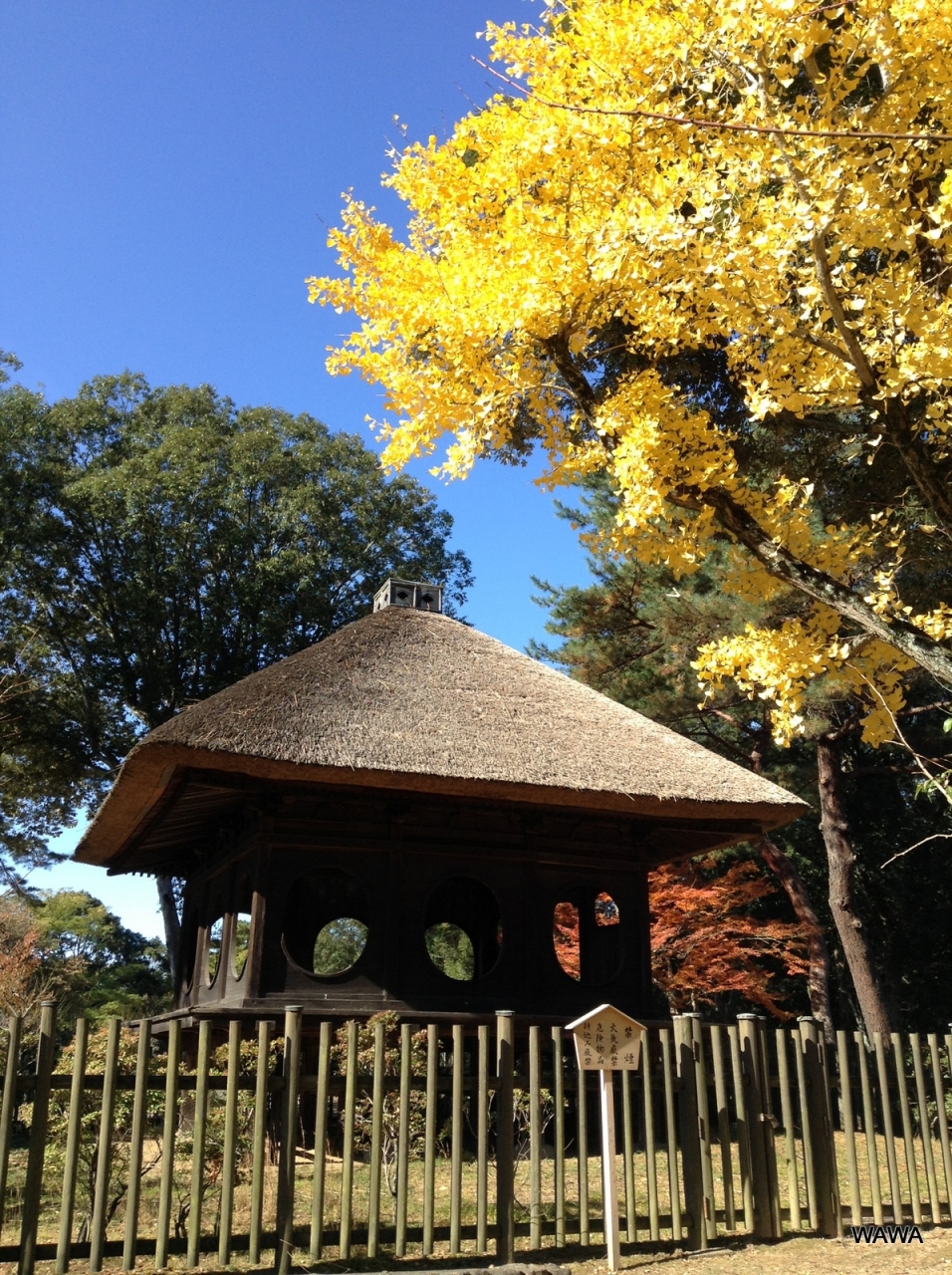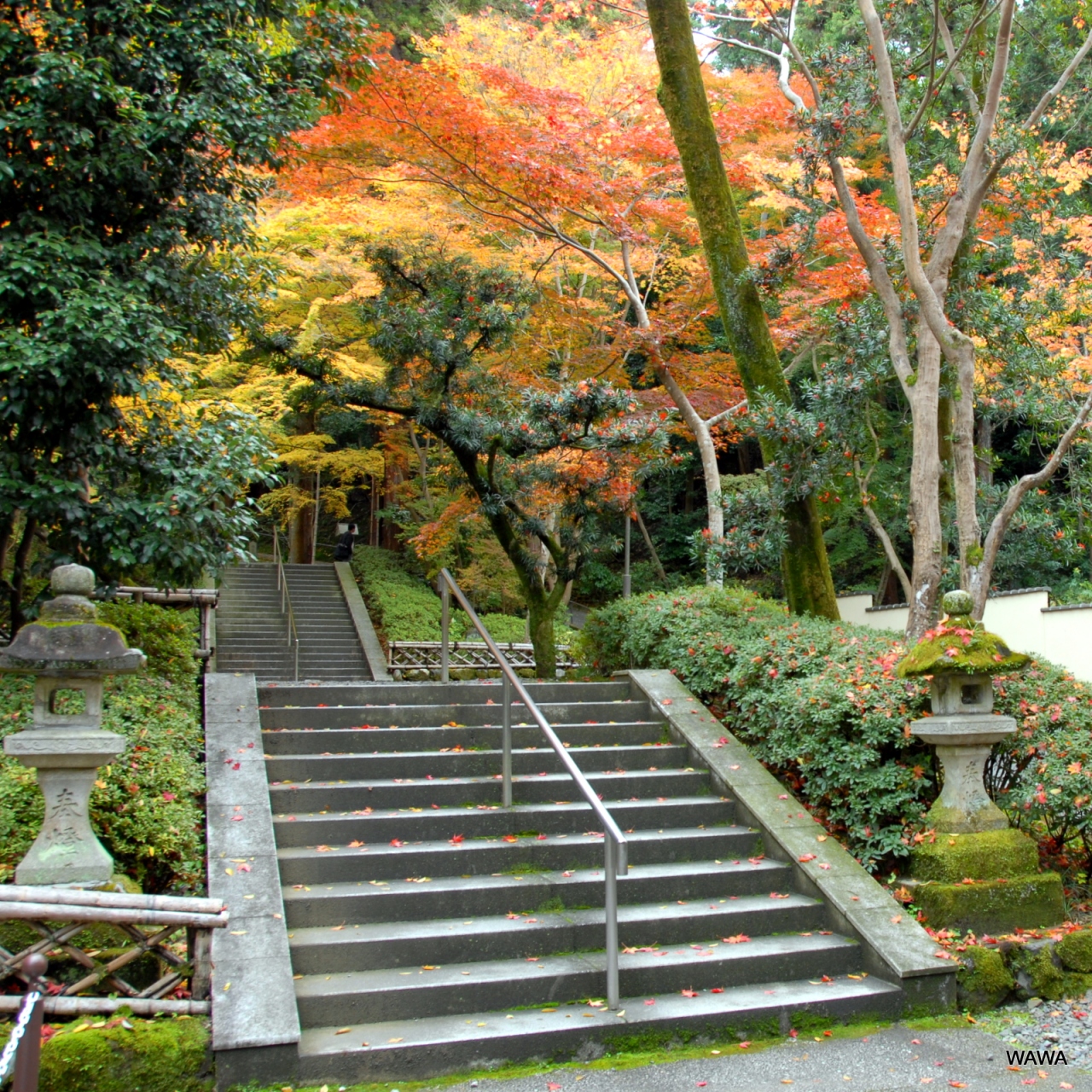 大原の勝林院と三千院の間に屋根のカーブが素敵な御堂があります。入場料はかかりませんが、周囲の柵から中には入れませんが、正面や右側から見ることが出来るので、背景の紅葉と小振りながら美しい御堂の景色を楽しむには十分です。人で溢れる三千院では事前のイメージとギャップを感じる方にお勧めの場所です。