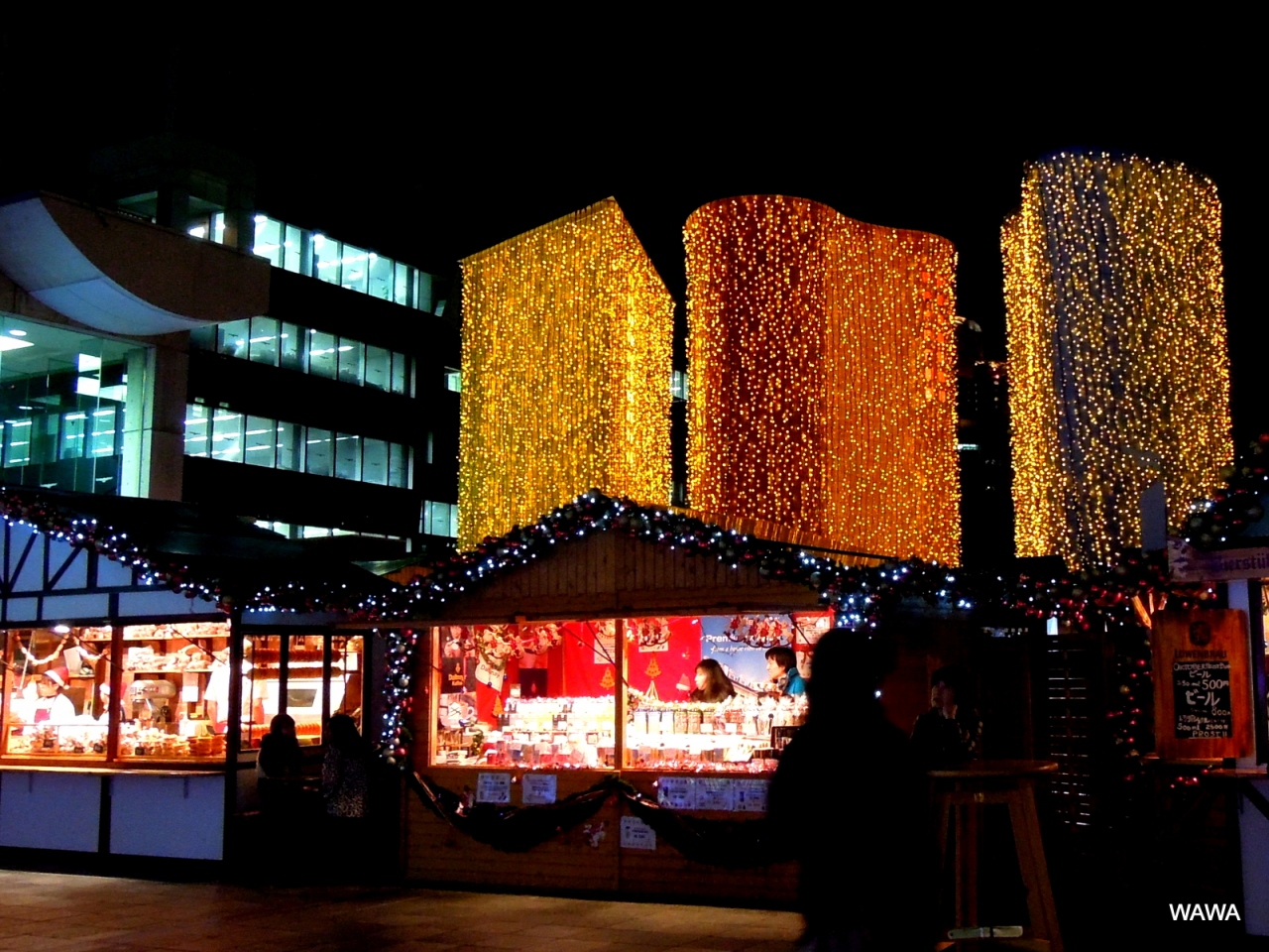 梅田スカイビルのクリスマスマーケットも今年で20年の節目とのこと。例年にまして華やかな飾り付けが施されています。その多くはドイツからコンテナで輸送されて来た本物で、何と設営している人達もドイツから飛んで来たドイツ人でした。