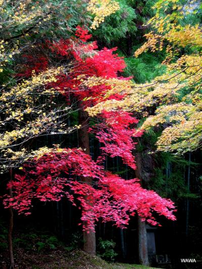 紅葉の穴場と言われる阿弥陀寺は京都大原三千院の更に北の山中にあります。
