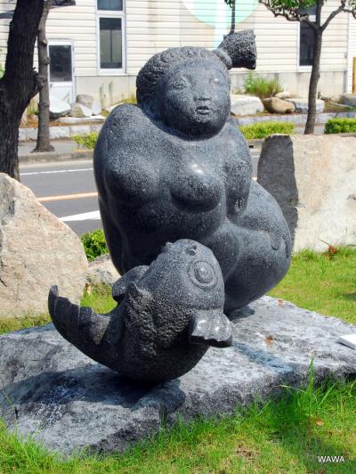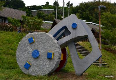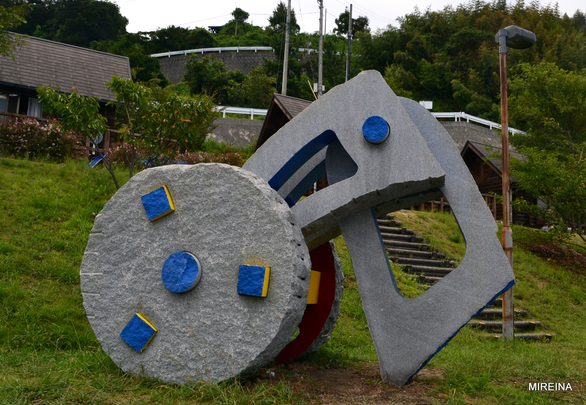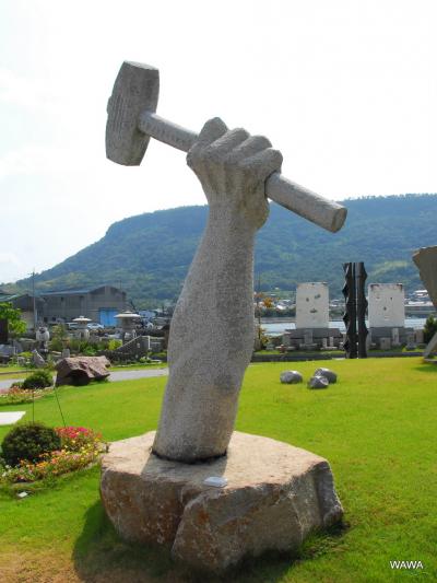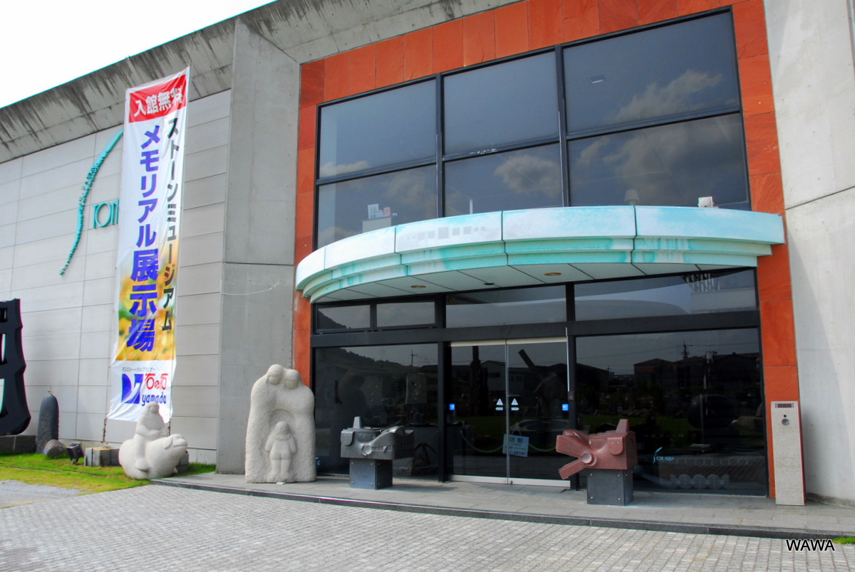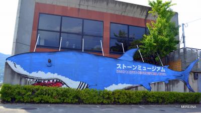 ストーンミュージアムは、最高級国産石材として知られる庵治石の産地、高松市庵治町にある石の美術館です。石材彫刻を中心に、世界遺産の石や世界各国から集められた化石や貴石などが展示されています。入場料は200円程ですが、訪問日がお盆休みでしたが入館しなくとも屋外展示だけでも楽しめました。なお、この辺りは石材や石材彫刻の展示が多く迷いそうになりますが、駐車場側の看板が巨大なカルカロドン(古代ザメ)なので、鮫を目印に探して見て下さい。