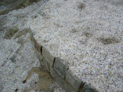 ガラス工場前には、ガラスの粒が敷き詰められていて綺麗でした。