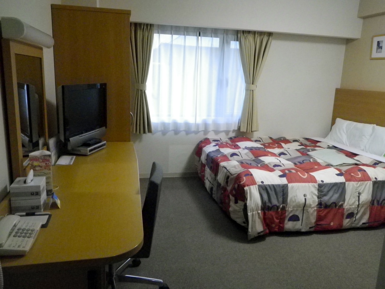 とてもきれいに清掃されていましたし、液晶TV有り、また、寝間着(前ボタンパジャマ)などアメニティも充実していました。