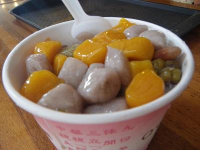 友達の話では、かき氷の上に白玉(芋味とかいろんな種類があります)がいっぱいのったおやつは