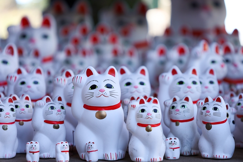 いろいろな所で見かけたことがあると思いますが、招き猫が沢山、置かれています。