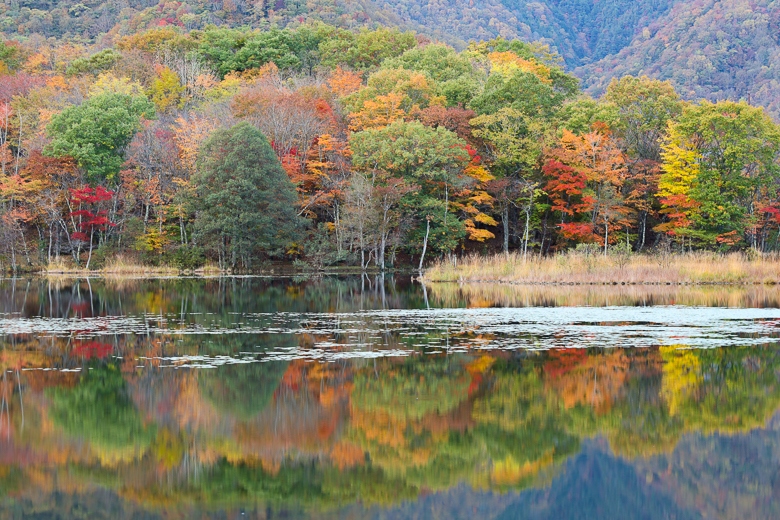 レークラインからの眺望は秋元湖、小野川湖、遠くには桧原湖を見ることができます。