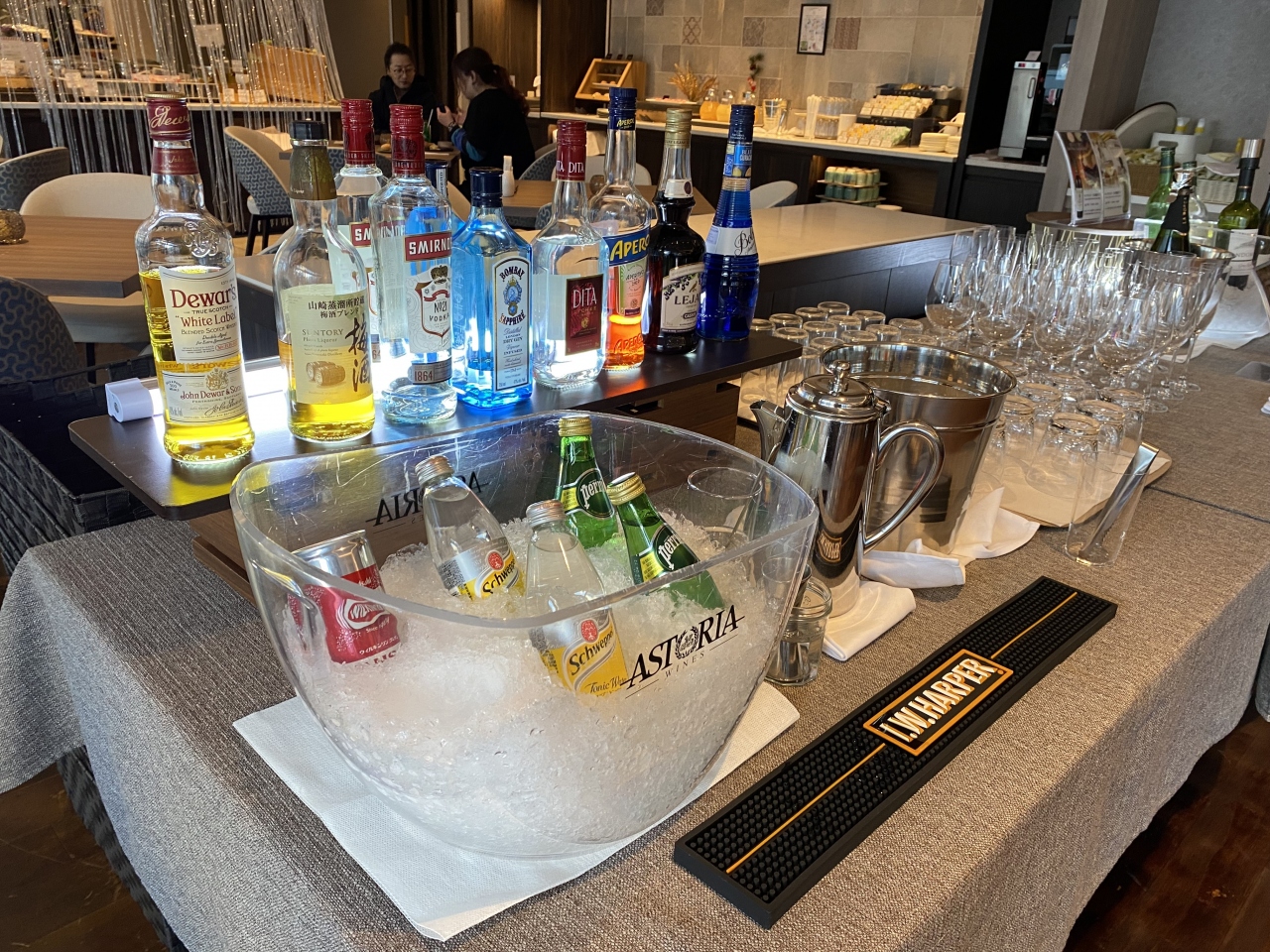 ラウンジではビール、カクテルなどをおつまみをいただきながら