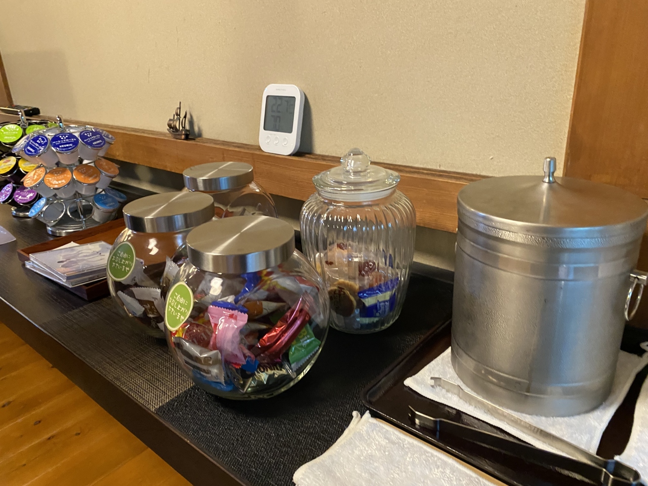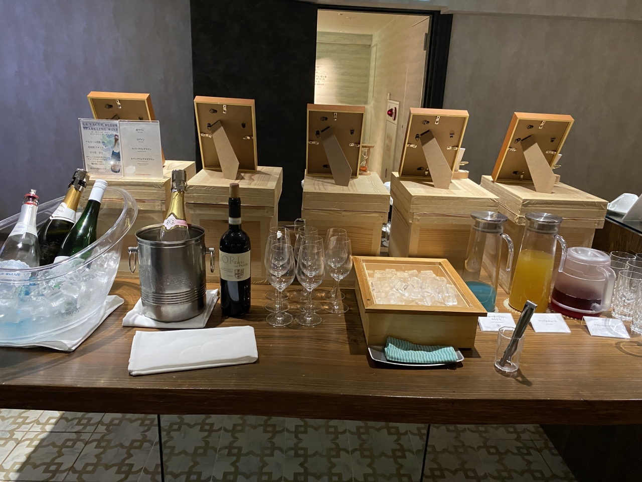 アルコールやソフトドリンク、お菓子などが自由にいただけます。