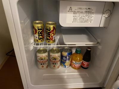 お部屋の冷蔵庫にもビールやジュースなどが入っていて、