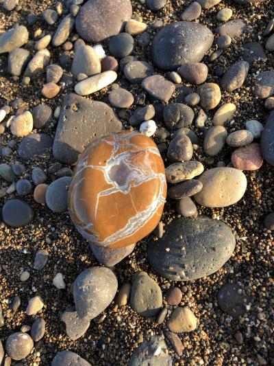 持ち帰る石も決まり,浜辺から撤収します.十三湖水戸口の五月女萢海岸から...