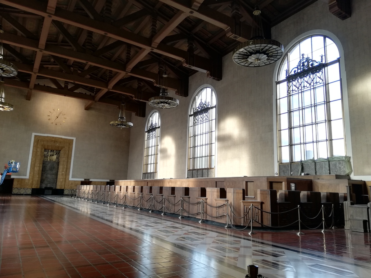 キャッチミーイフユーキャンで、昔の銀行として登場します。映画の中と同じだったので興奮しました。とても趣があって立派な駅です。隅の方に誰でも弾いてよいピアノがあり弾きたかったのですが、もう夕方で閉まっていたので残念でした。ロサンゼルスはどこでもそうですが、治安はあまり良くないと感じました。