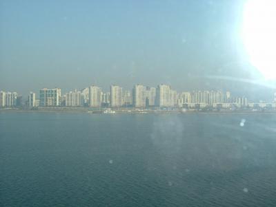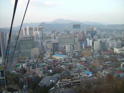 最終日、帰りのバスの中から漢江向こうに見えたソウルタワー。