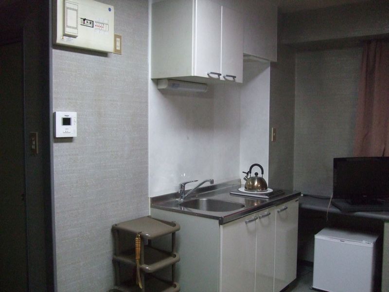 滞在型ホテルという形式なので、長期に利用するにはかなり便利なようです。廊下にはランドリーもあり、洗濯もできます。室内にはキッチン(一口のIHヒーターやヤカン付き)もあるので自炊も出来そう。