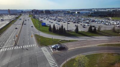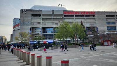 宿泊ホテル前から見たCNタワーとロジースセンター