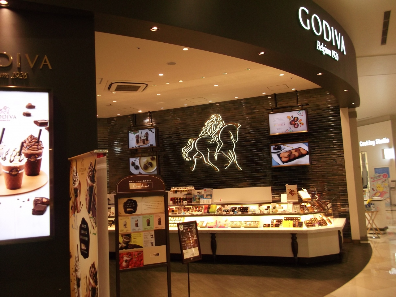 イオンモール幕張新都心店グランドモール1階にある、高級チョコレートのゴディバです。店内のショーケースには見た目もかわいらしいチョコレートがたくさん並んでいます。値段は安くはないので自分用にはなかなか手を出せませんが、ちょっとしたプレゼントにはよさそうです。