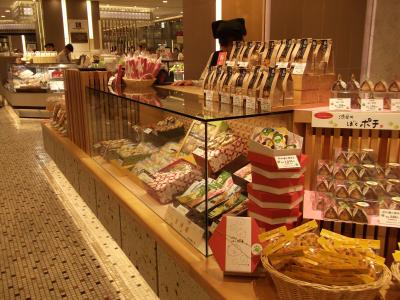 地下鉄渋谷駅直結のヒカリエ地下にある、おかき、おせんべいなどの和菓子のお店。種類が豊富で、ひと箱に色々なおかきの入った詰め合わせが人気です。犬の形をした焼き菓子の「ぼくポチ」もたくさん並んでいて、少しずつ犬の表情が違う「ぼくポチ」が箱詰めで販売されていました。