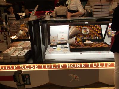 池袋東口の西武百貨店地下にある洋菓子のお店。まずはすごい行列に驚きました。商品はチューリップとローズを合体させた、見た目もかわいらしいカラフルなスイーツで、食べるのがもったいない感じもしてきます。4個入りの小箱入りからあるようなので、ちょっとしたおしゃれなお土産としてもよさそうです。