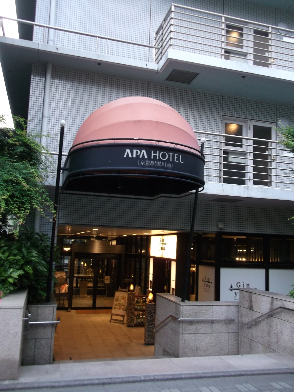 京都駅から歩いて8分ほど、堀川通り沿いにあるアパホテルです。近道があるのかもしれませんが、荷物を引いて歩くとやや遠く感じました。アパなので部屋は狭いですが簡素ながら一通りの設備は整っていて、周りの利便性を考えればコスパはかなり良いと思います。何よりもここは大浴場でくつろげるのがうれしいです。