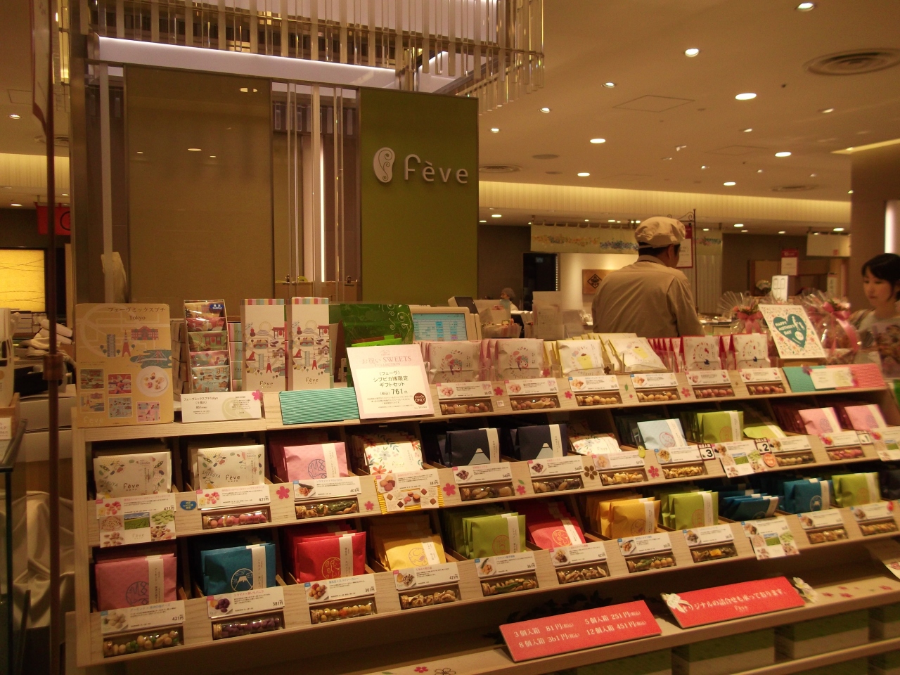 地下鉄渋谷駅直結のヒカリエ地下にある、自由が丘が本店の豆菓子のお店です。色々な種類の豆菓子が並んでいて、袋の中身がわかるように商品の下に透明のケースでお菓子が見えるようになっています。結構色々な組み合わせがあって、工夫されているのがよくわかります。値段もお手頃なのでちょっとしたお土産にもよさそうです。