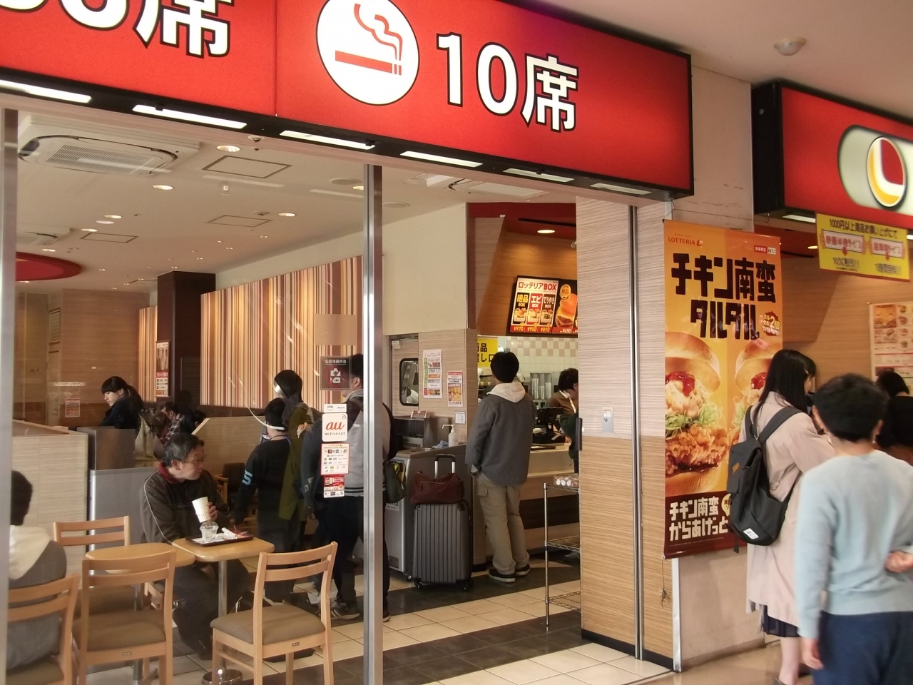 海浜幕張駅のメッセとは反対方向の北口を出ると目の前の、メッセアミューズモールにあるロッテリアです。店内は比較的広く席も多いですがやや窮屈な感じで、メッセなどでイベントがあるとかなりの混雑になります。1階はゲームセンターもあるので、やや騒がしいところもあります。