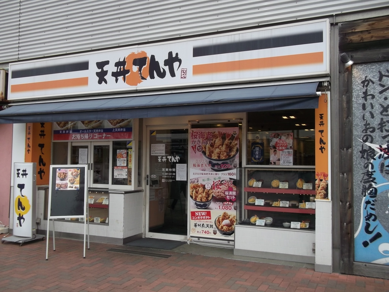海浜幕張駅北口広場前にある天丼チェーン店のてんやです。ここはお手頃価格で揚げたてのてんぷらが食べられるのがうれしいですね。店内は比較的広く、カウンター席と椅子席があります。電子マネー・ワオンが使え、JAF会員証の提示で割引もあります。