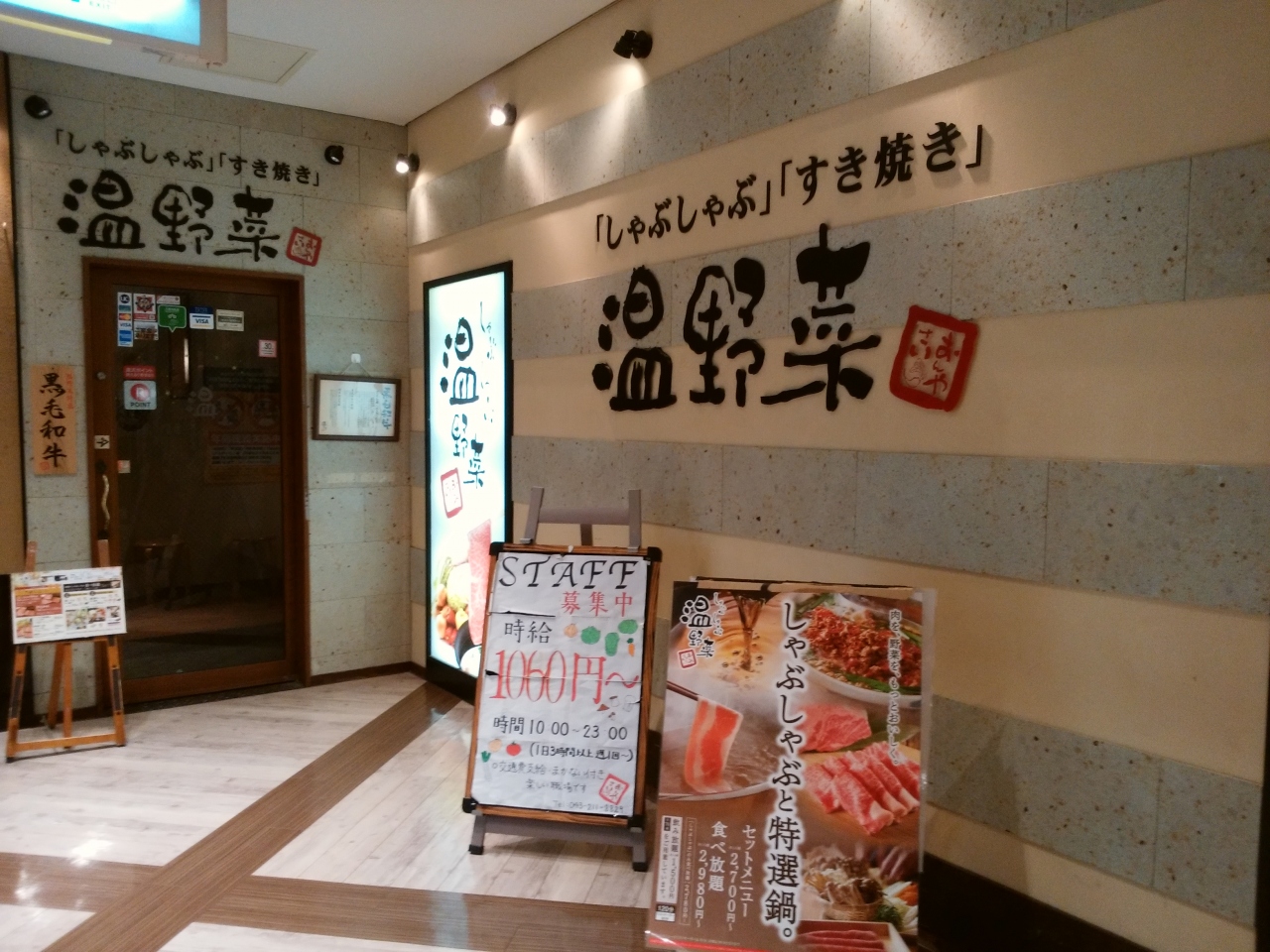 海浜幕張駅のまん前、プレナ4階にあるしゃぶしゃぶのチェーン店。しゃぶしゃぶの食べ放題コースをいただきました。肉は、牛カルビ・ロース、豚カルビ・ロース、鶏、と種類も豊富で、野菜もたくさんの種類の国産野菜がそろっています。シメに、ご飯、麺、デザートも付いてお腹いっぱいいただきました。ここはどちらかというと野菜がたっぷり取れるのが気に入っています。