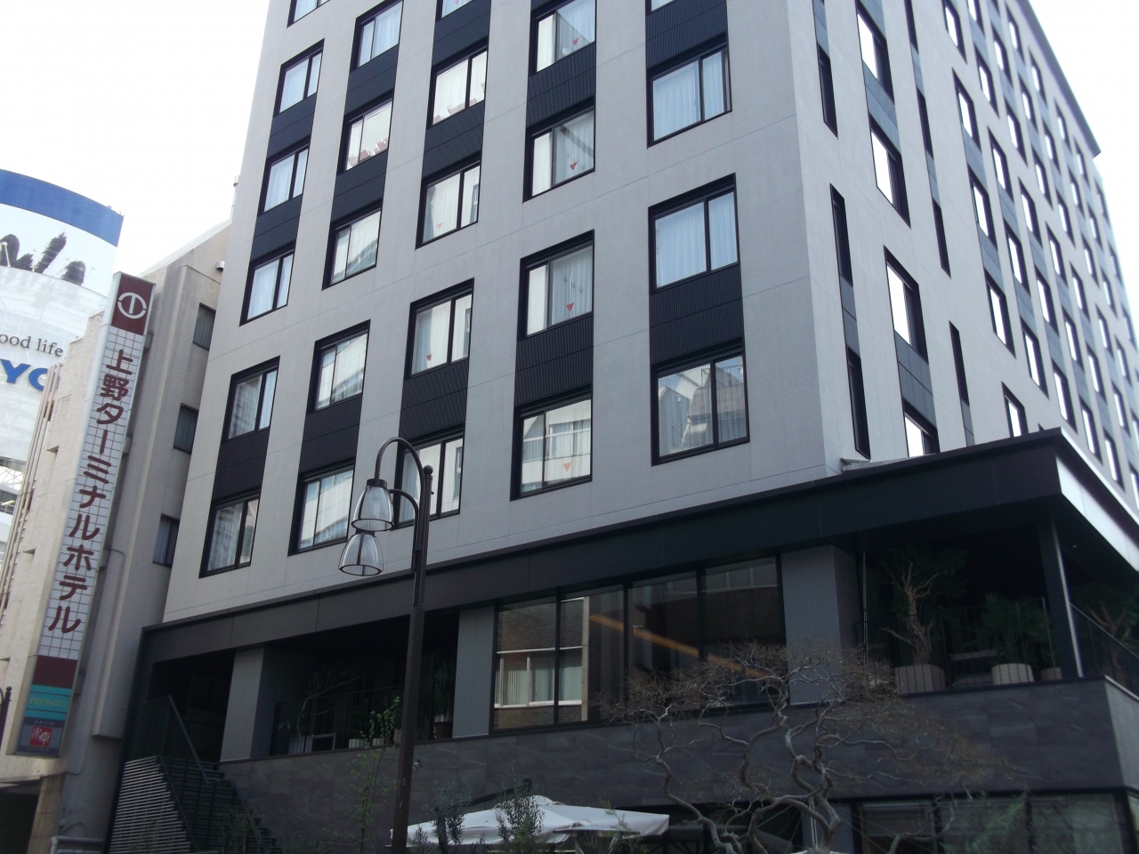 JR、地下鉄上野駅から歩いて2,3分ほど、大通りから少し離れたややごちゃごちゃした所にあります。建物はやや年季が入っていますが、リフォームしてあって清掃も行き届いていたので特に問題はありませんでした。部屋はせまいので荷物を置くとかなり窮屈ですが、このあたりとしては値段は安いので納得はできました。