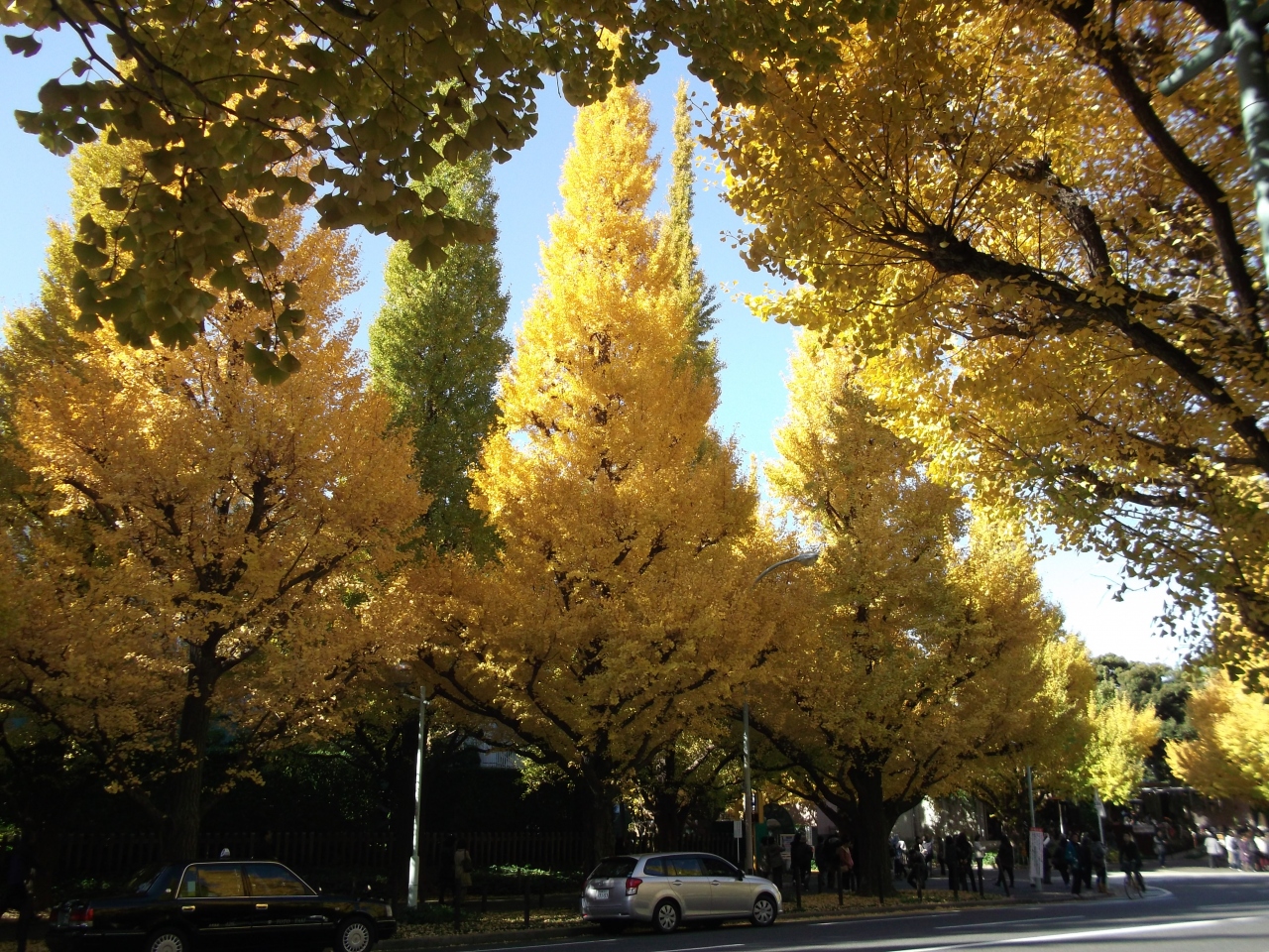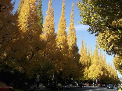 11月後半ごろになると明治神宮外苑のいちょう並木は黄色に染まり、それに合わせていちょう祭が開かれます。混雑は覚悟しなければなりませんが、聖徳記念絵画館のあたりの広場では出店が開かれ色々なイベントも行われていて、秋の終わりの一日を楽しめました。