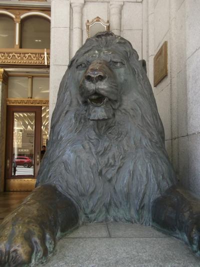 日本橋三越の入り口の両側に、まるでお客様を迎えるかのように立つライオン像。これを目にすると、三越だなぁと感じます。実に堂々としていて風格が感じられますが、大正の初めごろからここにあるというのは驚きです。ライオンの足の先は人が触るので、光り輝いているのも印象的です。