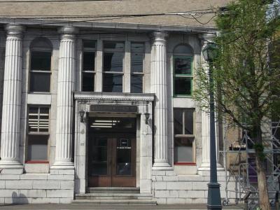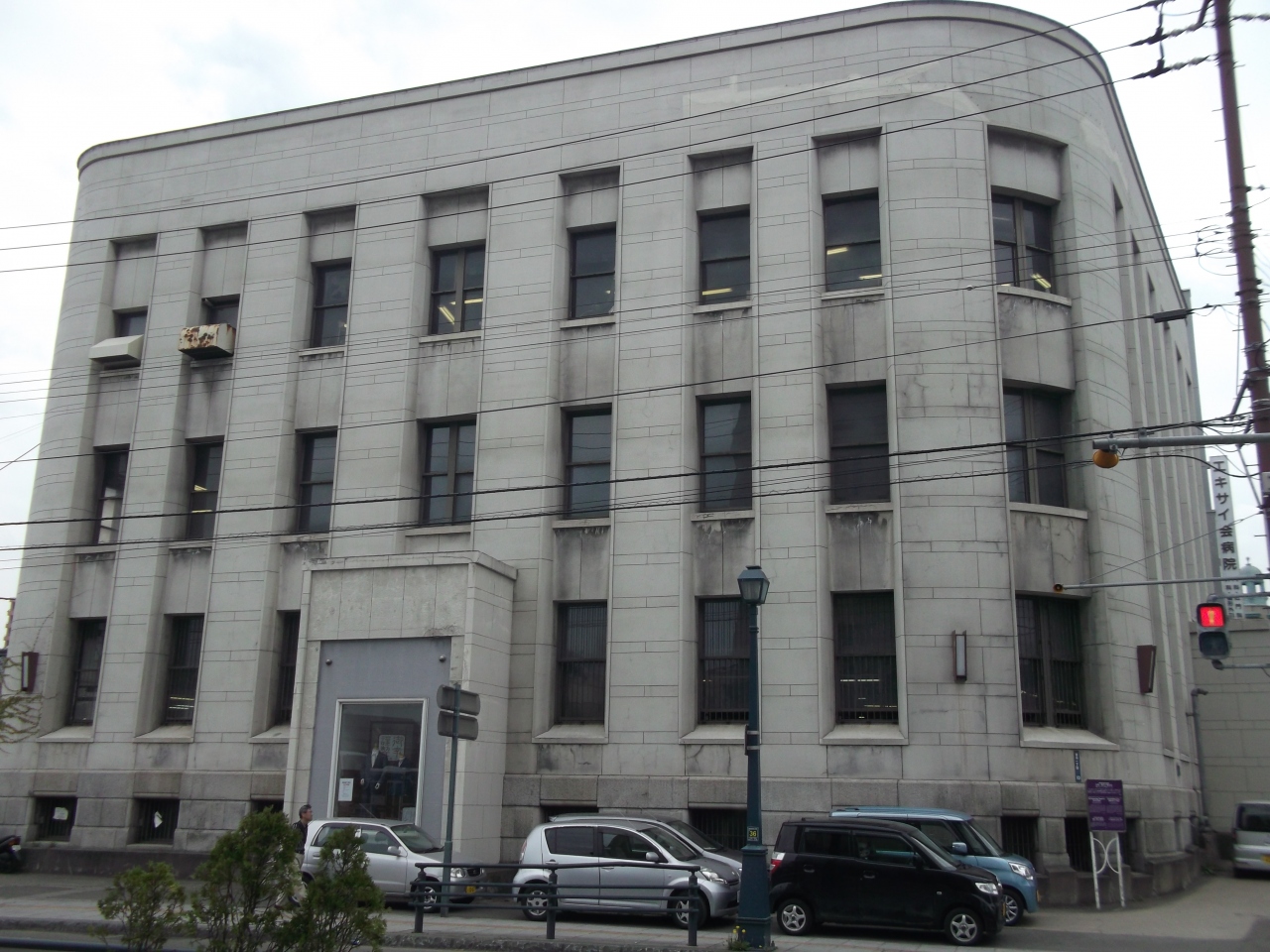 かつて北のウォール街といわれていた一角の中央通り沿いにある、かつての銀行の支店の建物です。ほかの銀行と比べると重厚感はやや物足りないところもありますが、表門の太い柱がむき出した造りには力強さがあり、当時の意気込みが感じられます。