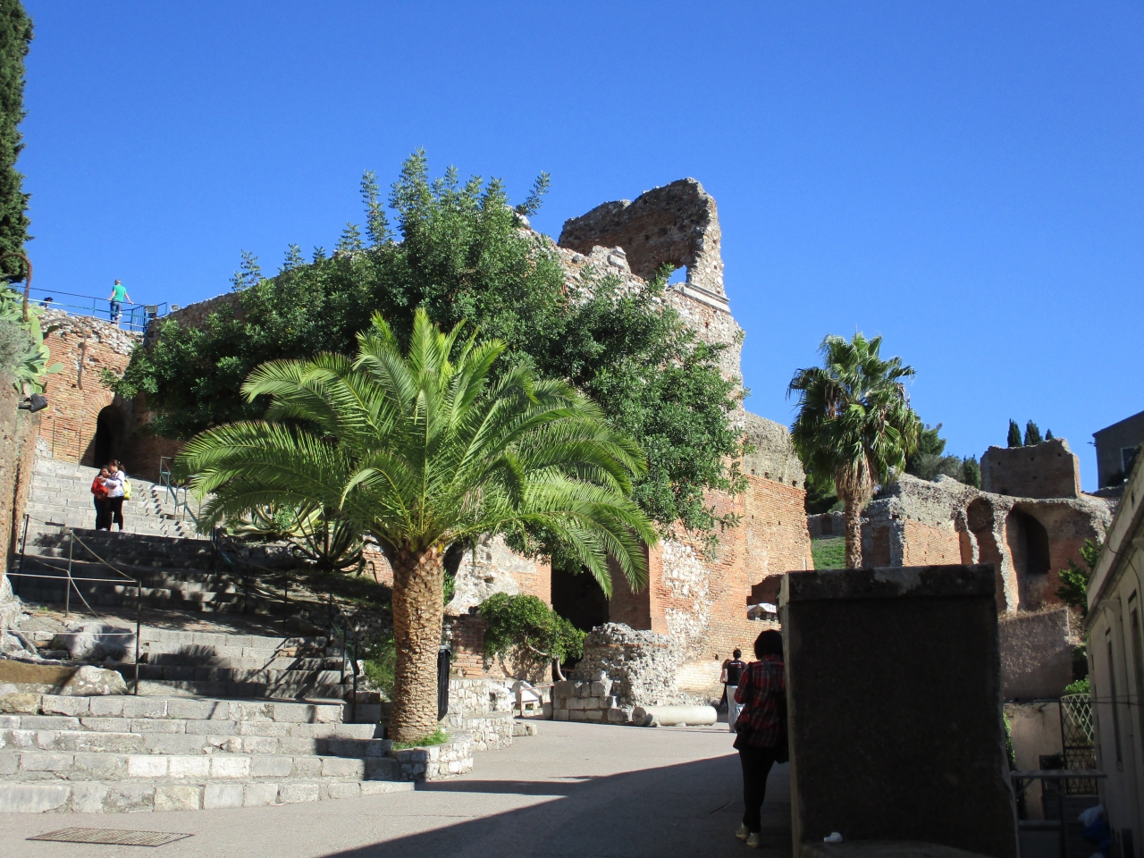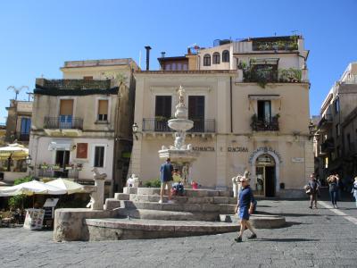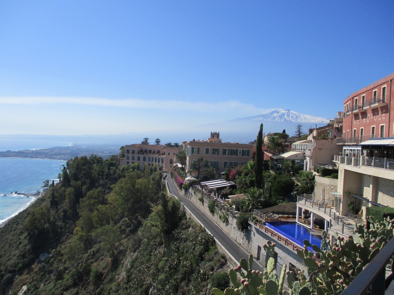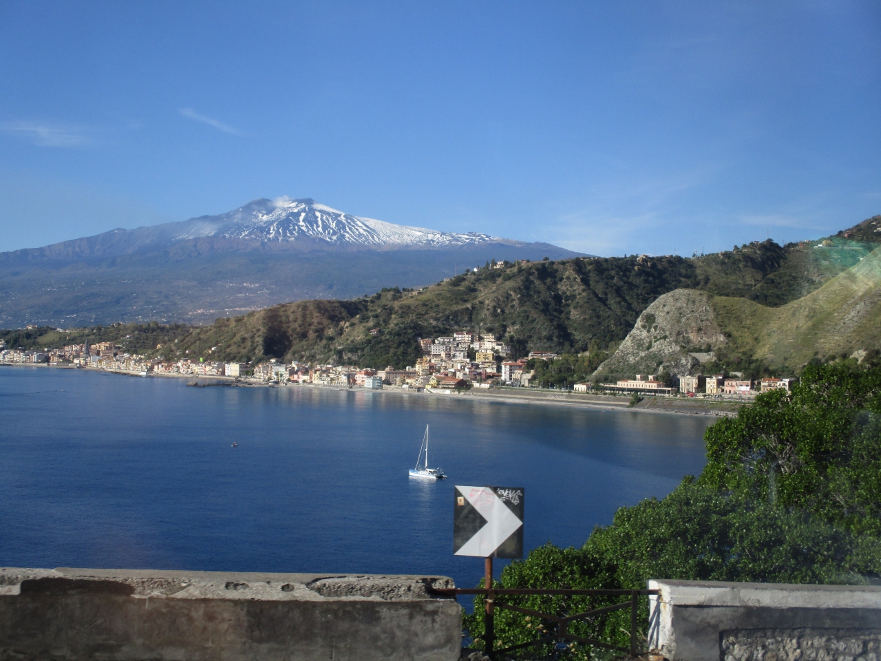 タオルミーナのバスターミナルは旧市街の中心からは離れていて、メッシーナ門のさらに少し先にあります。カターニャからバスでここに辿り着きましたが、たまたまホテルがバスターミナルから近かったので便利ではありました。ここから近郊各地にもバスが出ていて、鉄道駅が遠いだけに行き先によってはずいぶん助かりました。ここからかなりのくねくね道を通って海沿いの道へ出ますが、途中の車窓からの眺めは素晴らしいものがありました。