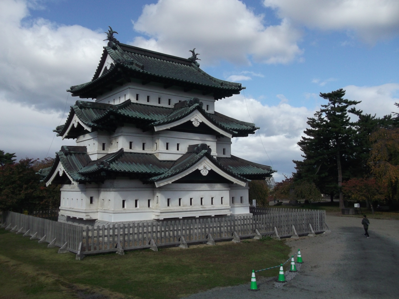 江戸時代の始め、初代津軽藩主の為信が計画し、その跡を継いだ信枚が完成させた津軽家の居城が、現在は弘前公園になっています。広さが50ha近くある広大な公園で、天守閣のほか、植物園、博物館など見所も多く、また緑も豊かなので散策も楽しめます。春のさくら祭りは有名ですが、今回訪れた秋の紅葉祭りも春に負けずに楽しめました。