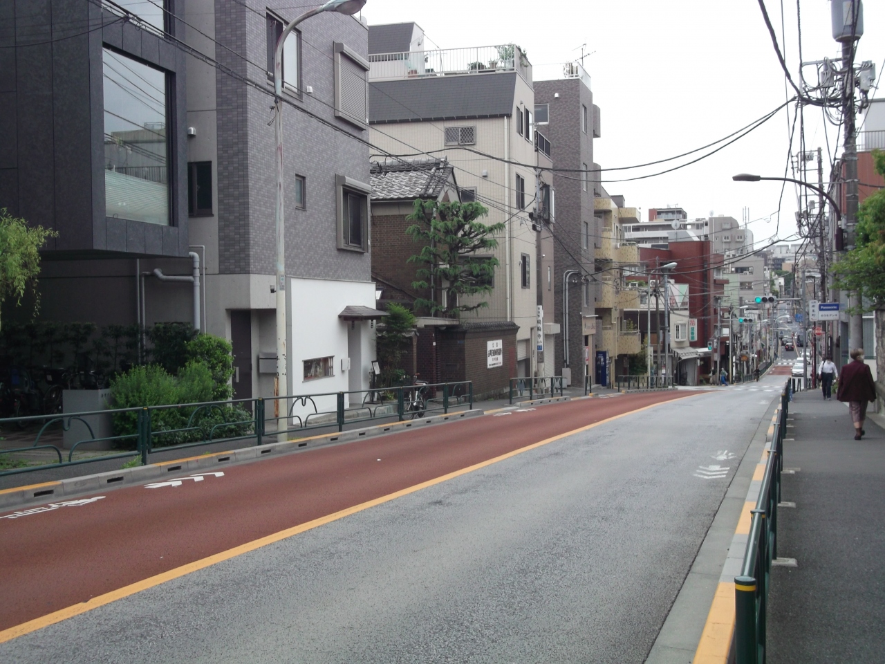 銀座六丁目付近の昭和通りから新橋演舞場横を過ぎ、直角に曲がって中央市場通りに抜ける通りです。演舞場までの道はオフィスビルが建ち並び、特別な景観はありません。演舞場横を曲がるといくつかの飲食店があります。演舞場で催し物があるときは結構混雑しますが、通常は人通りは多くはありません。