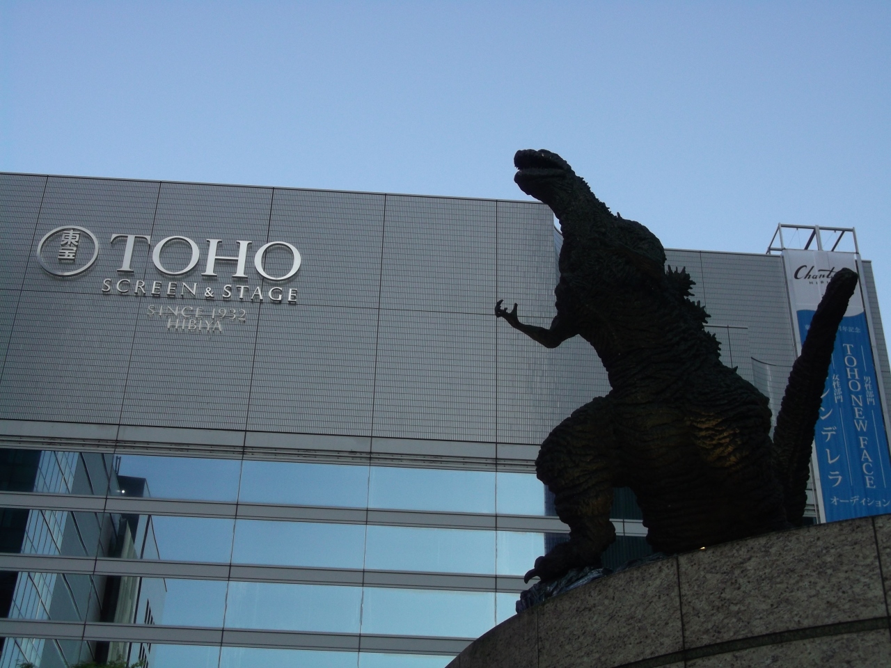 日比谷シャンテ前にある合歓の広場の少し高い位置に立つゴジラの像です。広場が改装されて高い位置に移動し、以前よりも目立って見えます。それほど大きな像ではありませんが、精巧にできていて力強さが感じられます。