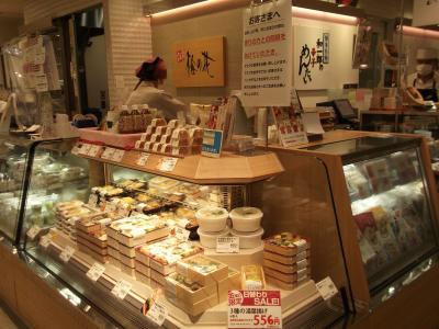 横浜駅東口隣接のそごう地下食料品店街にある、湯葉と豆腐の専門店の梅の花のショップです。店頭には、湯葉揚げ、生麩田楽、豆腐しゅうまい、といった一品料理のほか、豆腐料理の入った各種お弁当が並んでいました。気軽に湯葉が食べられるところがうれしいお店です。