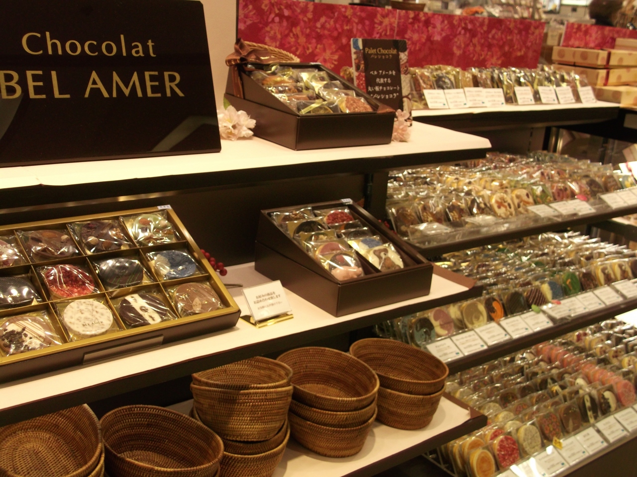 横浜駅東口隣接のそごう地下食料品店フロアにある、チョコレートのショップです。店頭には、種類も豊富で見た目もかわいらしいチョコレートがズラリと並んでいました。バラで販売されているので、好みのものを選びお土産用のパッケージにしてもらうことができるのがうれしいです。